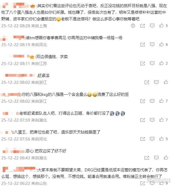 当然,这已经不是DRG第一次这样做,因此在赛后的评论中,大量网友吐槽“比赛成绩对DRG来说,没有赚钱重要。”